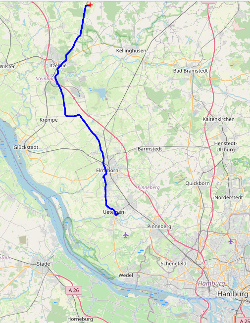 Irgendwann auf dem Weg ging es dann nach Itzehoe,gestreift. Vielfältige , unterschiedliche Eindrücke hat Itzehoe hinterlassen. Und wieder einmal hat die Stör einen bleibenden Eindruck hinterlassen. Schon einmal bin ich von der Wilstermarsch aus ein gutes Stück an der Stör entlanggefahren, habe diese Landschaft genossen. Jetzt aber geht es weiter Richtung Elbe, aber erst einmal muß ich noch durch Elmshorn. Hier hat man noch nicht viel davon mitbekommen, dass Fahrräder zum Verkehr gehören. Wie in vielen Städten, die ich auf dieser Reise durchquere, stelle ich hier fest, dass ich heftigst ausgebremst werde, Ampeln, unklare Wegbeschreibung, Baustellen, die mit dem Trike nur schwer passierbar sind.
